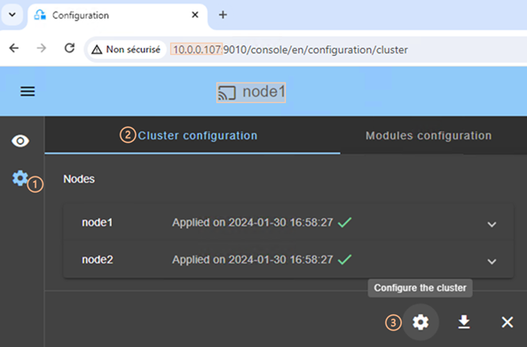 3.2.2 Cluster configuration home page